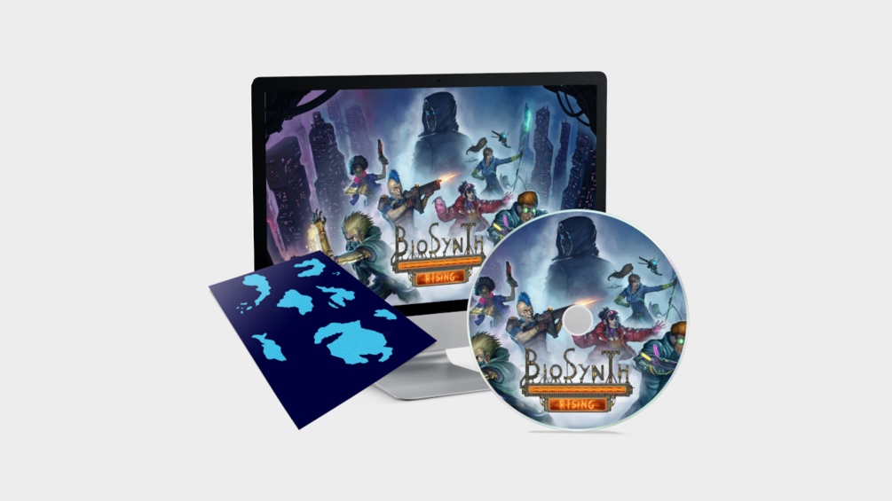 Get a digital copy of BioSynth: Rising, a digital map for the game world and the digital soundtrack - as soon as they're ready.